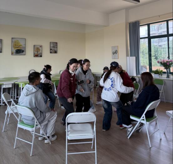 活动伊始,通过“桃花朵朵开”“大风吹,小风吹”等趣味横生的破冰游戏,同学们迅速打破了初见的拘谨与陌生感。在游戏中,大家手拉手围成圈,随着指导老师的指令灵活组队,未能及时成团的同学还带来了精彩的即兴表演,现场笑声不断,气氛热烈。通过这些游戏,同学们不仅熟悉了彼此,还学会了在人际互动中要积极主动 ,认识到集体归属的重要性。