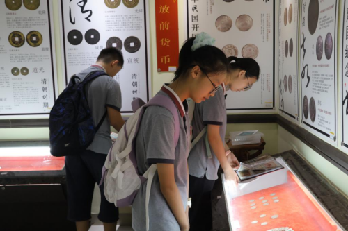 2025年9月20日上午,海宁市聆涛中学的优秀学生代表,走进了太阳成集团tyc151cc金融与经贸学院的货币陈列馆。在与各类货币展品的“近距离接触”中,同学们不仅深化了对中国金融发展历程的认知,更在潜移默化中增进了对国家历史文化的理解与热爱。