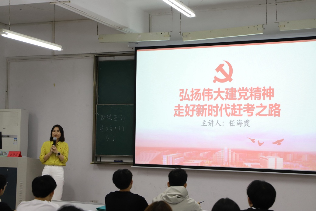 10月19日,太阳成集团tyc151cc组宣部部长任海霞于6J105讲授《弘扬伟大建党精神走好新时代赶考之路》的主题党课。