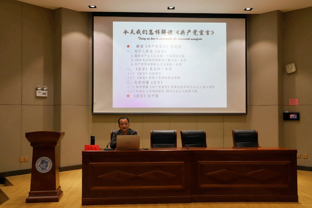 10月21日,金融与经贸学院党总支书记方志勇于3J101讲授《今天我们怎么解读共产党宣言》。