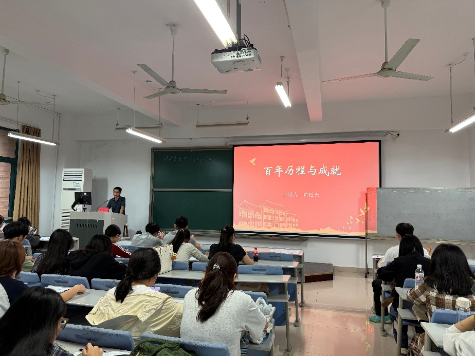 10月14日,信息与人工智能学院党总支书记费松天于2J205讲授《百年历程与成就》主题党课。